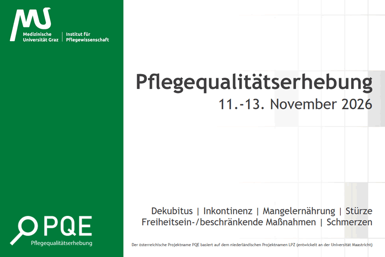 Die nächste Pflegequalitätserhebung wird von 11.-13. November 2026 stattfinden. Hier finden Sie den Informationsflyer.